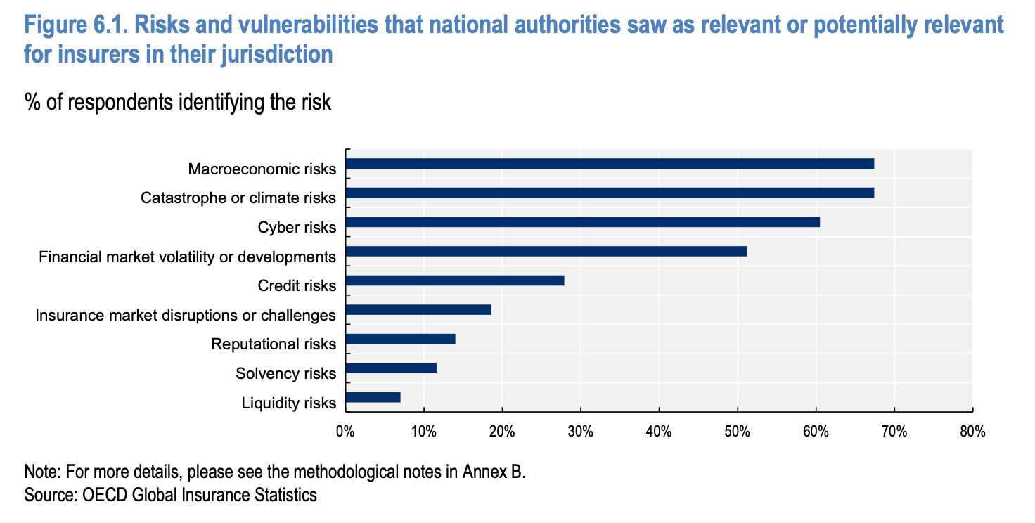 The findings were released this week as part of the Organization for Economic Cooperation and Development’s (OECD) annual market trends survey of international insurance supervisors.