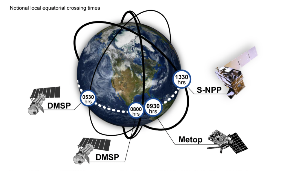 Polar-orbiting satellites, which have been used since the 1960’s, circle the earth in a north-south orbit twice a day and provide coverage of long term conditions that affect the weather and climate. The satellites are used by public and private forecasters in the U.S and internationally.